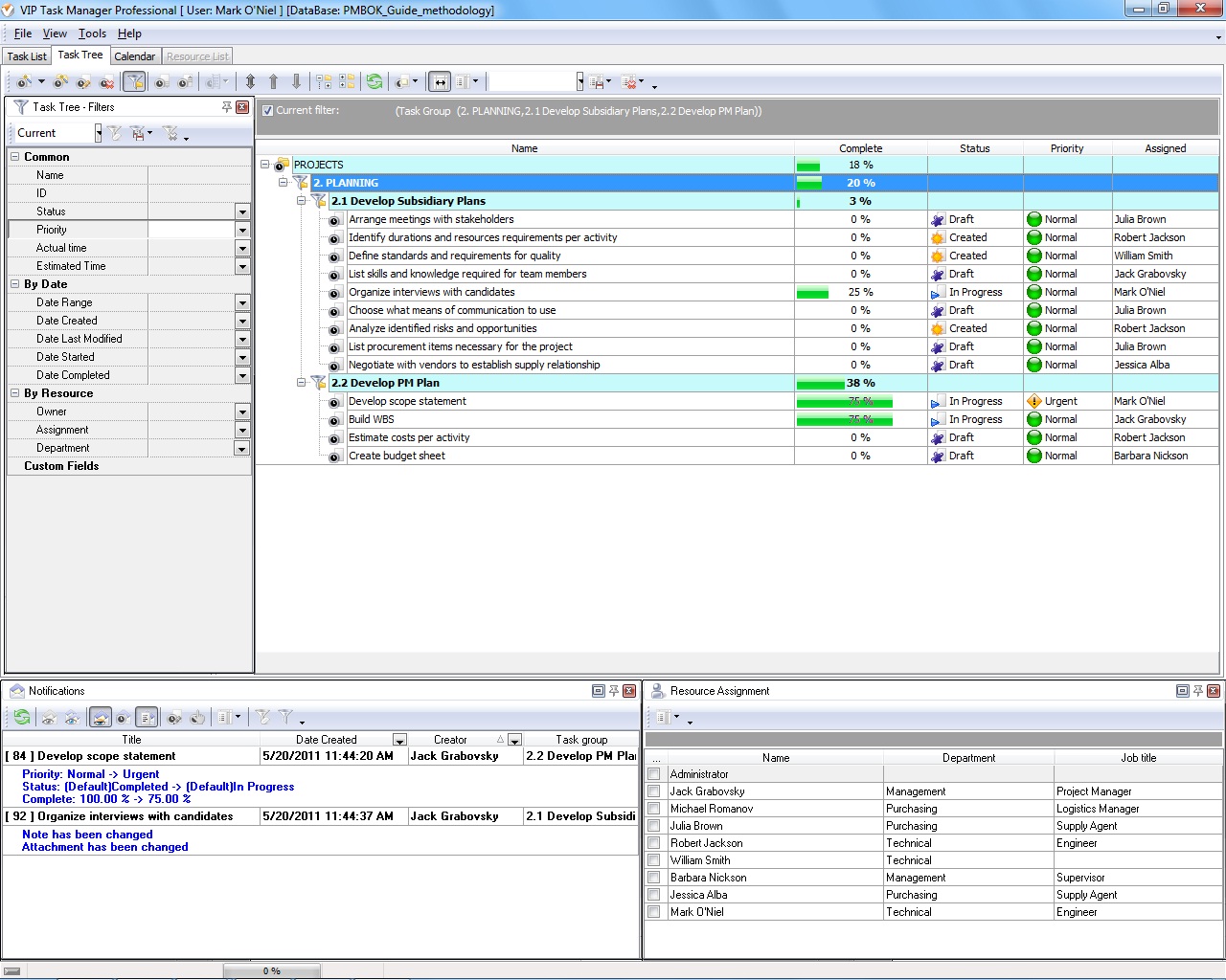 Using VIP Task Manager to complete all the tasks and activities of the planning processes will help the PM team to do everything required for successful project planning. Let’s find out how to develop the PM plan and subsidiary plans in accordance with the PMBOK Guide and then see how VIP Task Manager can be helpful.