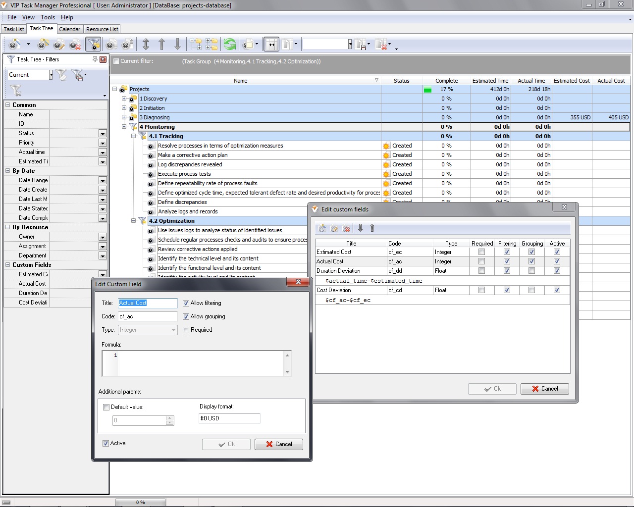 The two activities of the Monitoring phase can be divided into a range of tasks to be planned and managed with help of VIP Task Manager. Your team can use the software to design checklists and templates. For example, the following checklist can be created to manage tasks of the Monitoring phase: