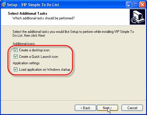 If you need Desktop, Quick Launch icons and auto load on Windows start-up, check the appropriate boxes and click ‘Next’