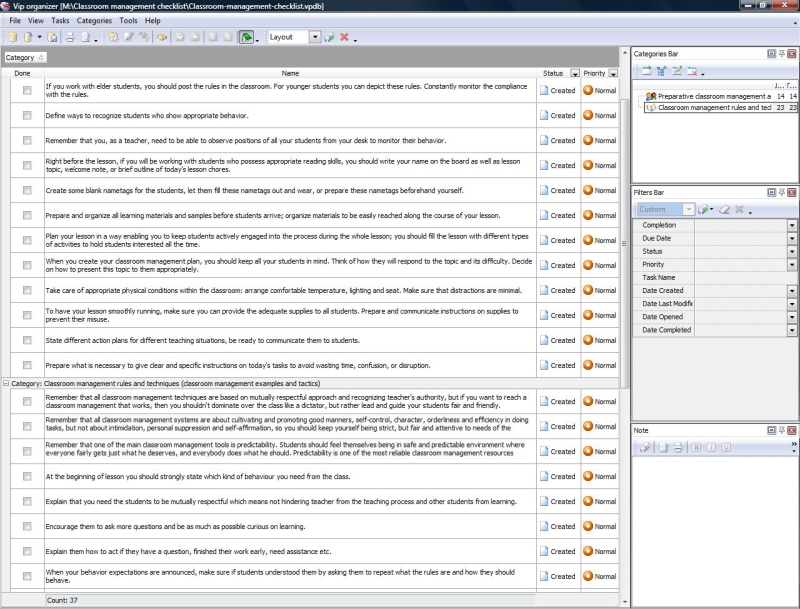 This classroom management checklist explains what the teacher should do and know in order to prepare the lesson, classroom environment and students for learning. It will be helpful for any person who is not professional pedagogue but should conduct some educational practice, or who is just a beginner in this honorable profession. This classroom management checklist contains a lot of useful classroom management tips which will help you to succeed in teaching.    Classroom management checklist