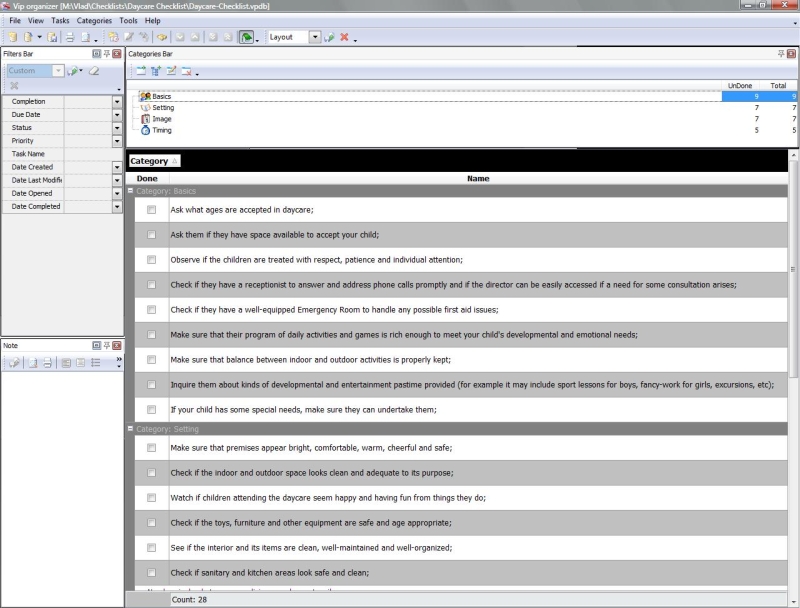 This Daycare Checklist is designed to help parents who would like to find a good daycare facility for their kids. With a help of this checklist you can learn what essentials you need to know about the facility to be sure that your kid is safe, happy and looked after properly.   Daycare Checklist
