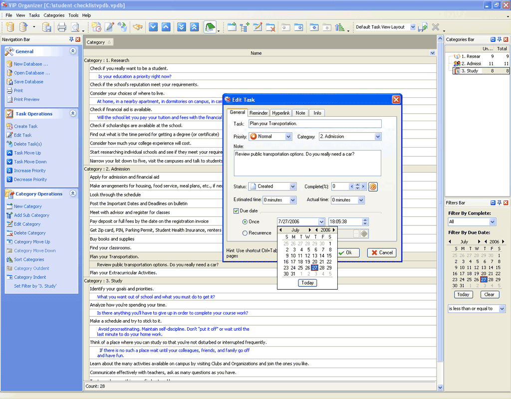 Student Checklist is a 'to do list' for you to stay focused on your educational goals. Use this Student Checklist to figure out if a college is really right for you, have a good freshman experience and be effective and efficient student. Student Checklist