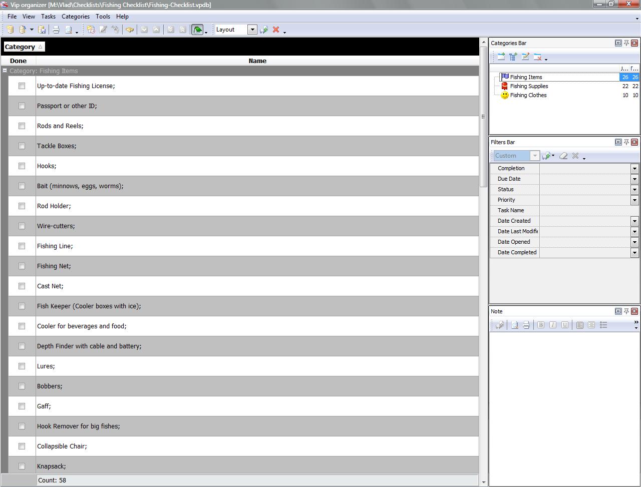This Fishing Checklist is created for beginner anglers, as well as for more experienced ones, who are going to catch some fish whether in sea, on a lakeshore or on a river, and therefore need some useful ideas on what essential items, supplies and clothes they need to pack.