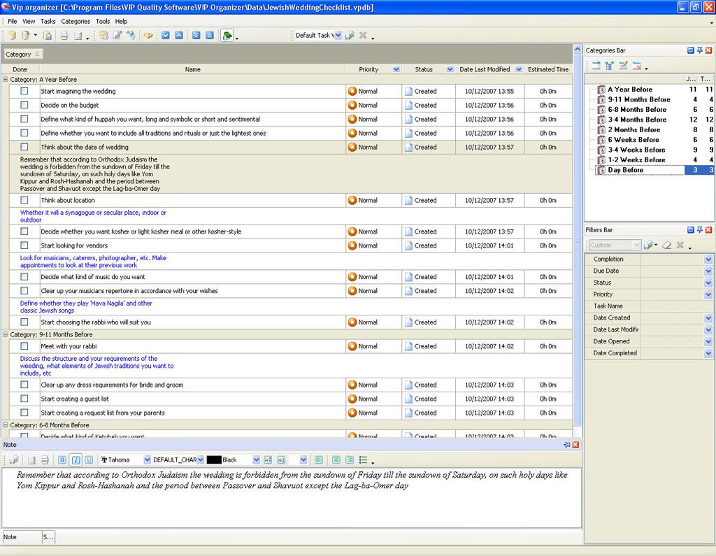 Jewish Wedding Checklist is a 'to do list' for you to get all required information about Jewish wedding traditions and get everything done for this wonderful and important event. Use this Jewish Wedding template as a checklist to avoid forgetting any details regarding huppah.