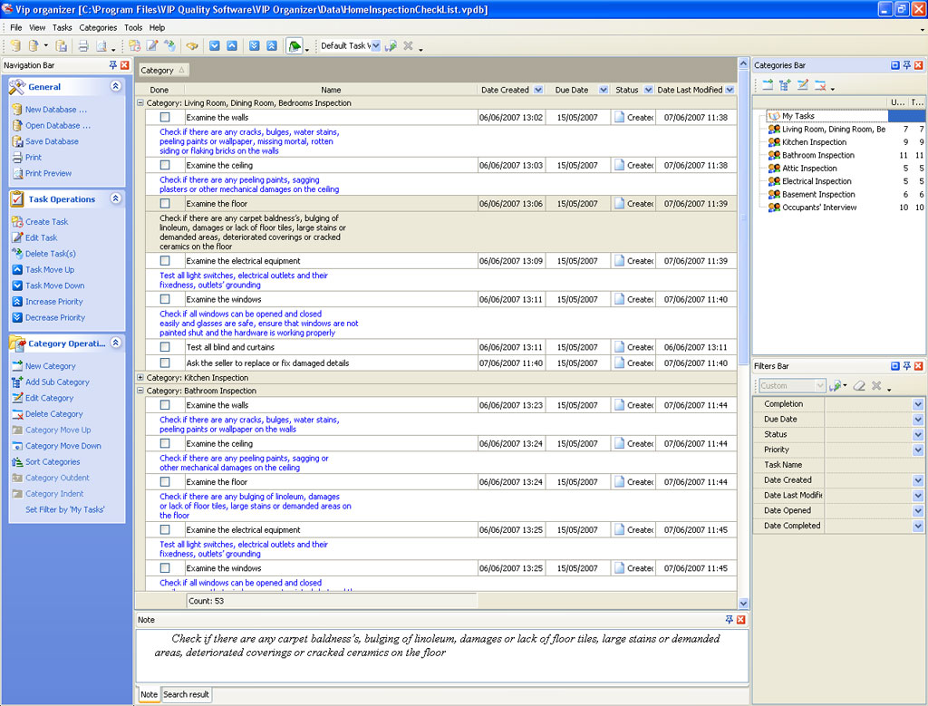 Home Inspection checklist is a "to do list" template that consists of all questions you have to ask in order to buy a house that you'll enjoy. Use this checklist to remember each detail that you have to check before you make a decision to buy the particular house