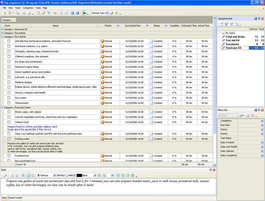Hurricane checklist is a 'to do list' template that will help you to take appropriate measures to be ready to survive in hurricane. Use this Hurricane template to make sure that you've done everything to protect yourself and your family in case of disaster.