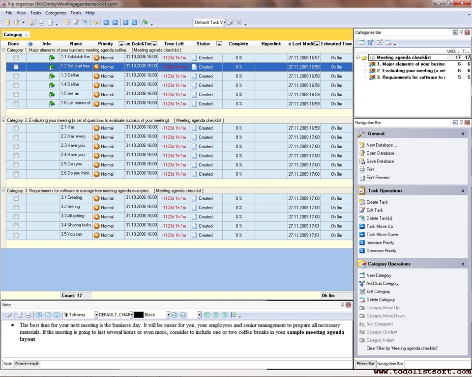 • Creating, scheduling, prioritizing, and categorizing items in your free meeting agenda format template.