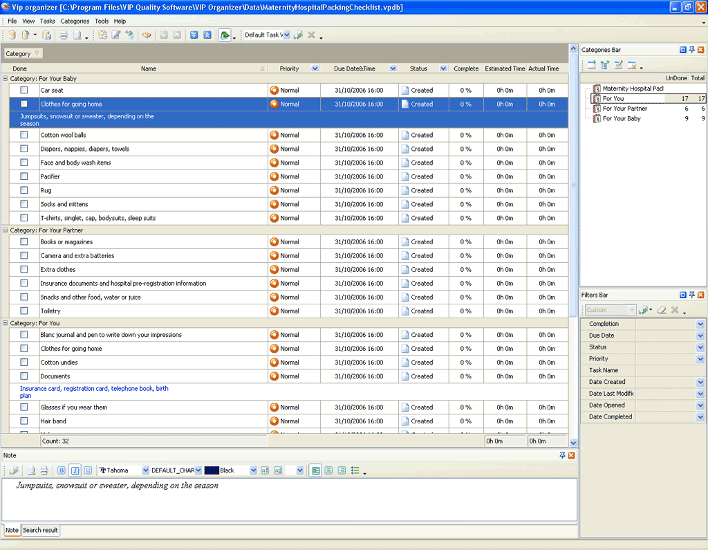Pregnancy Hospital Bag checklist is a 'to do list' for you to pack all required items before leaving to maternity hospital. Use this checklist to avoid forgetting any details that you, your partner and future child will need during childbirth and for initial period after baby's delivery.