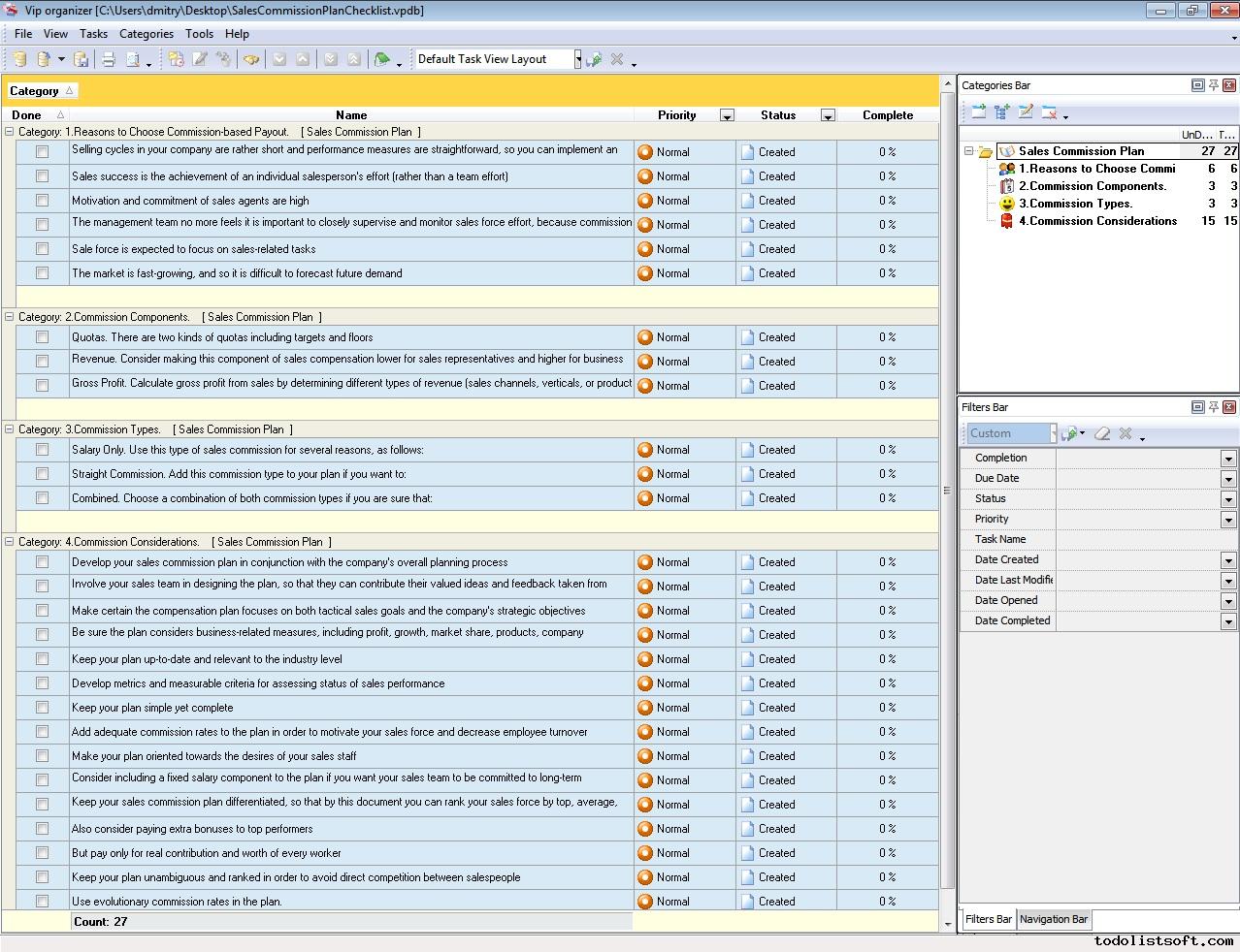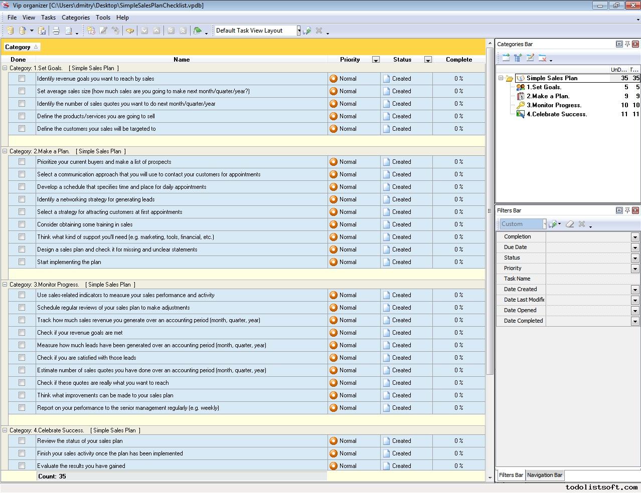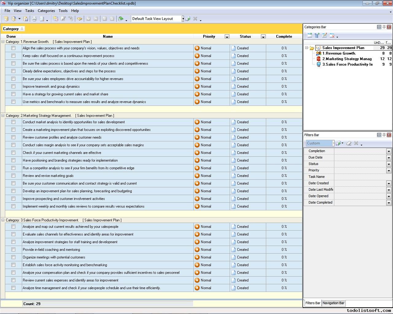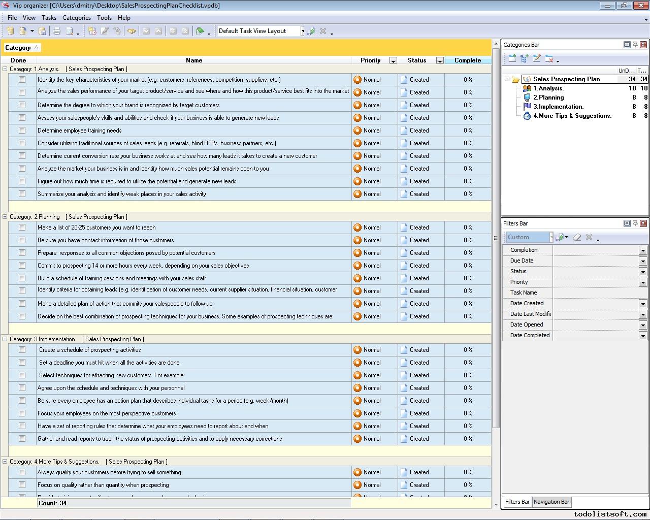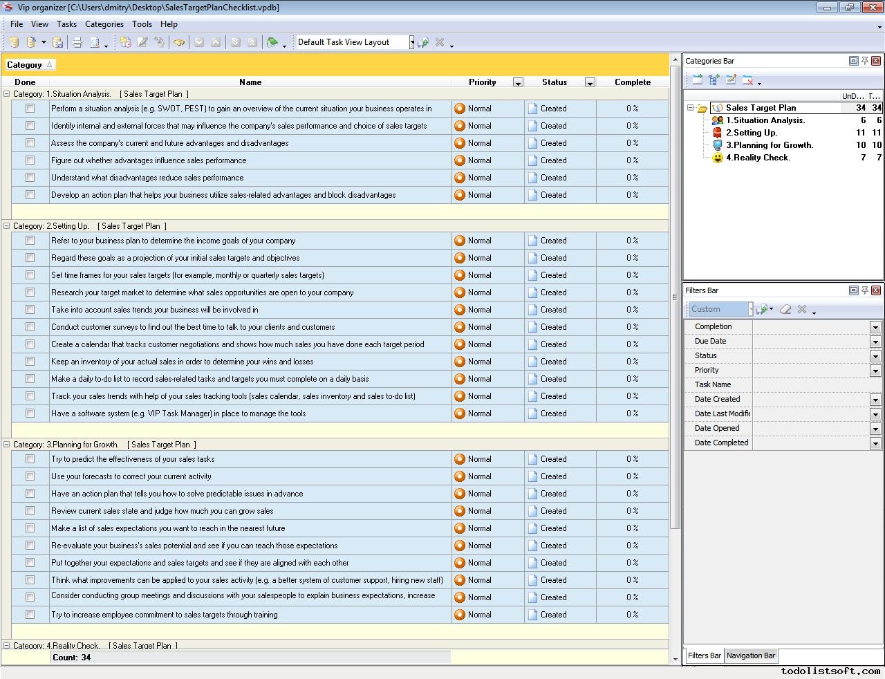 This Strategic Sales Plan Checklist explains what actions need to be done for creating a sales plan based on strategic business goals. This document is designed for sales managers, market analysts and other professionals involved in sales management. It is recommended to use the checklist with VIP Organizer software.