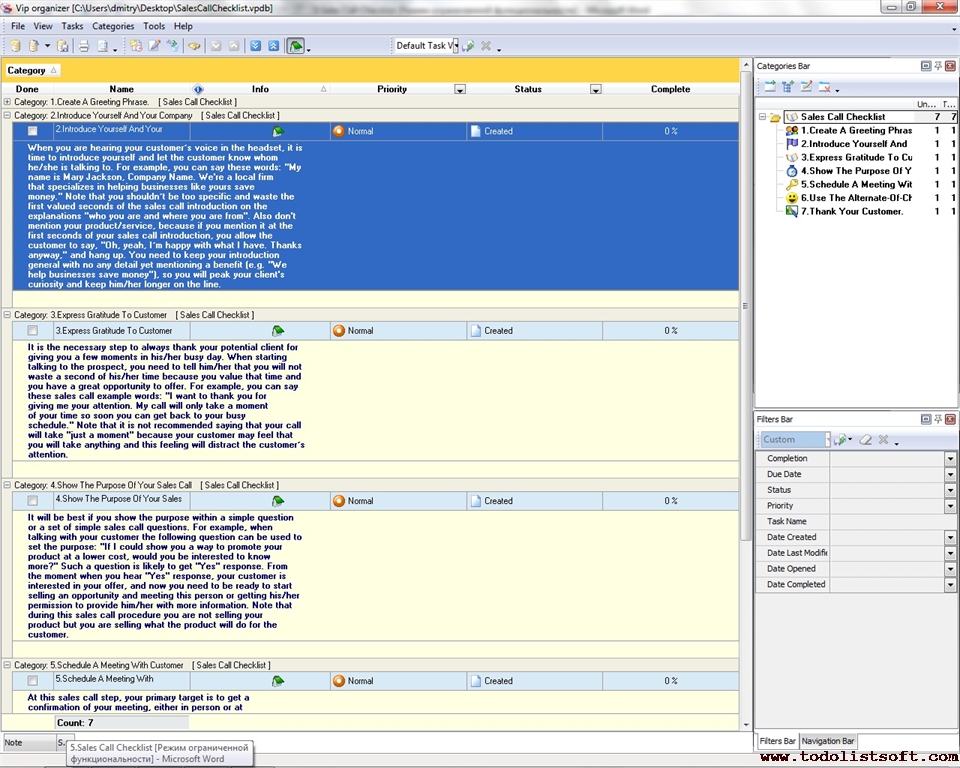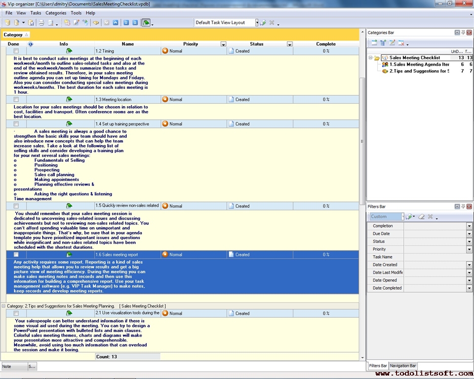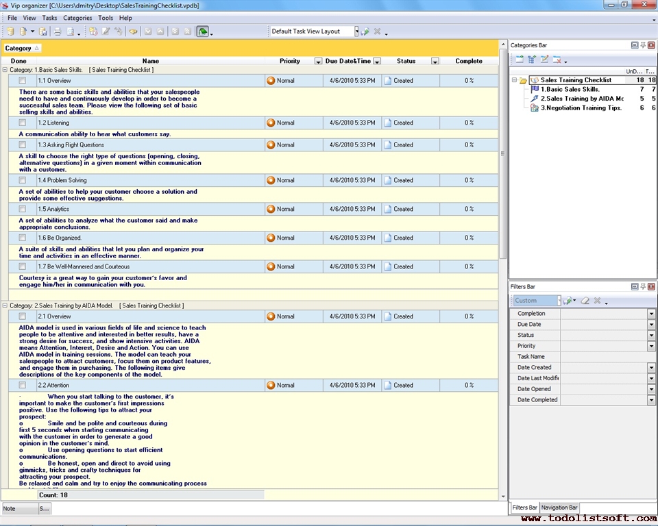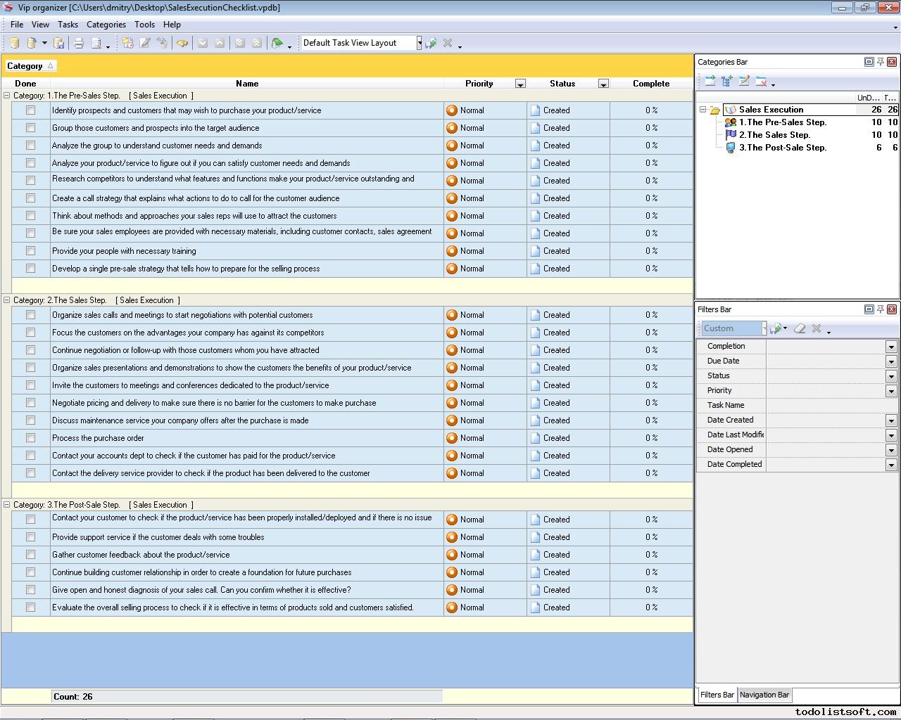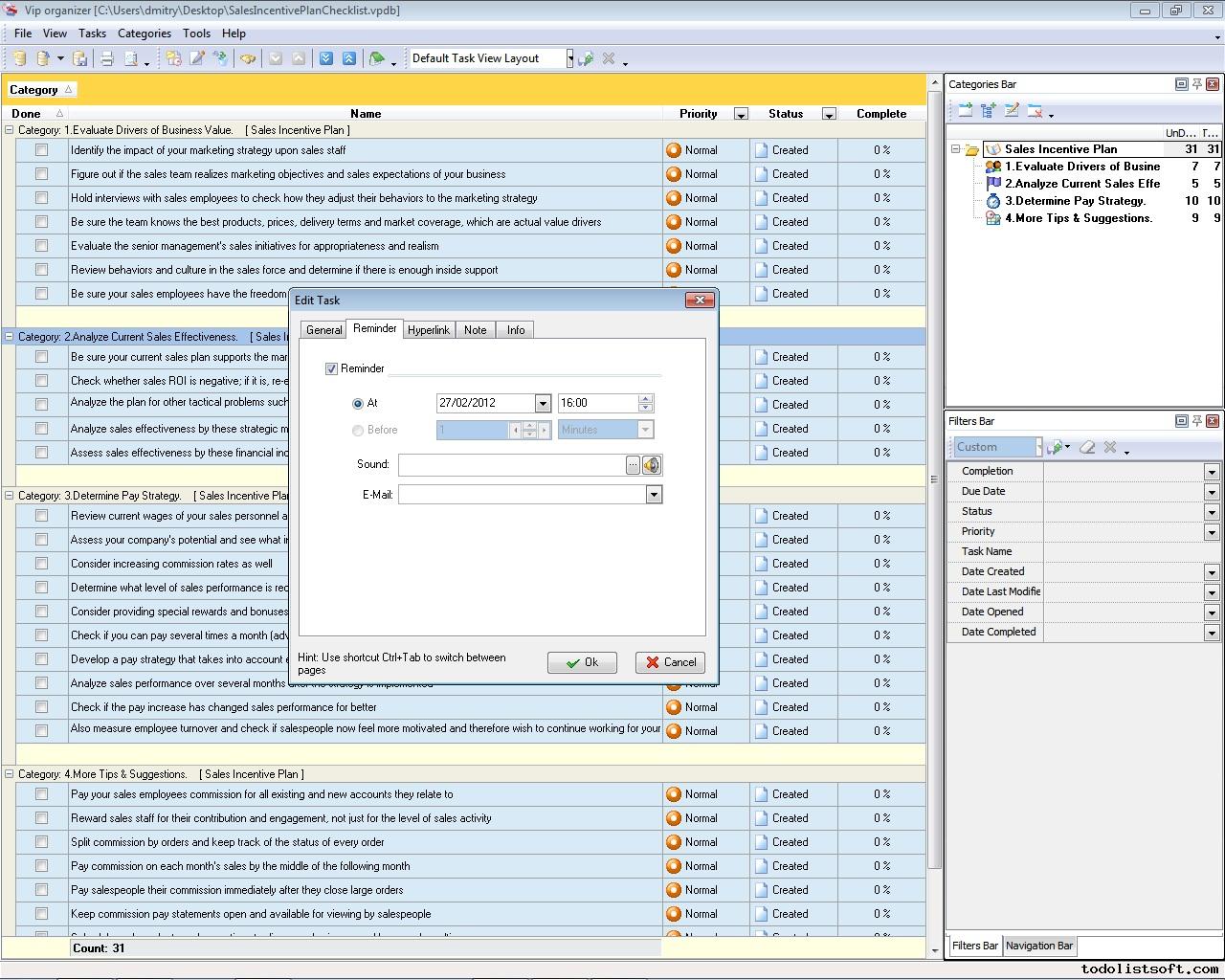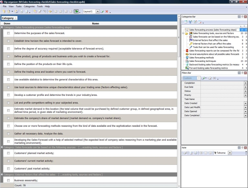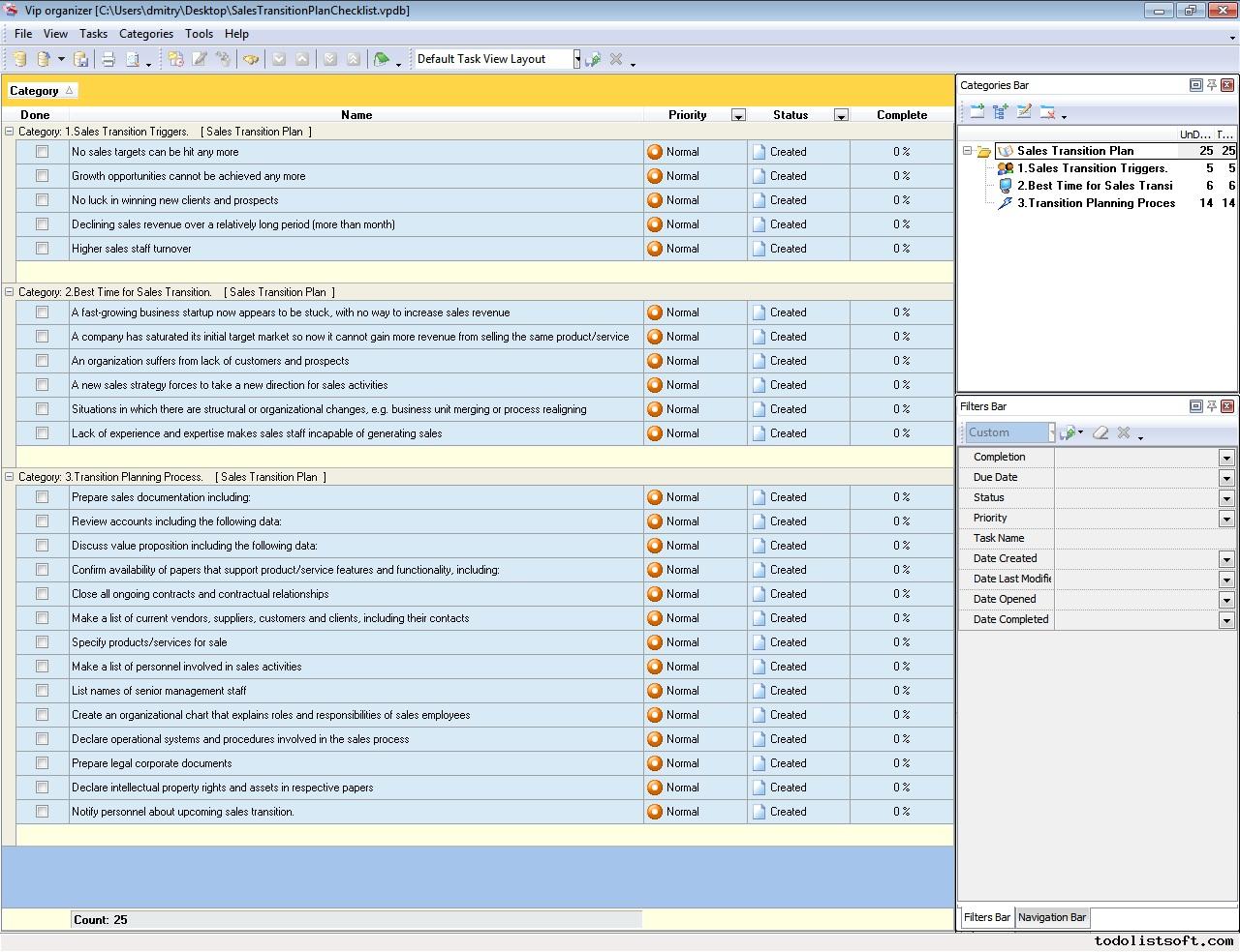 This Strategic Sales Plan Checklist explains what actions need to be done for creating a sales plan based on strategic business goals. This document is designed for sales managers, market analysts and other professionals involved in sales management. It is recommended to use the checklist with VIP Organizer software.