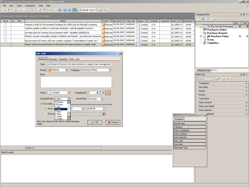 - VIP Organizer is the best solution for the procurement managers who need to manage only personal tasks and organize daily activates.