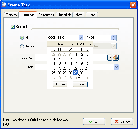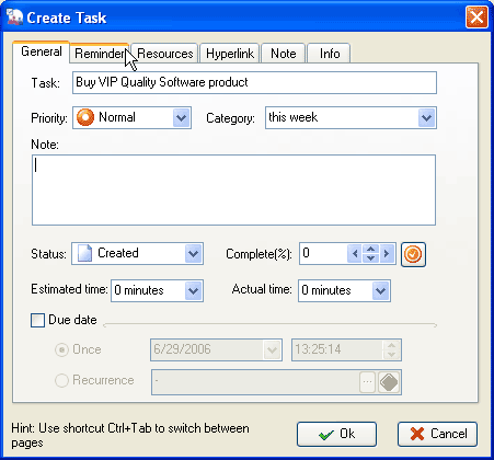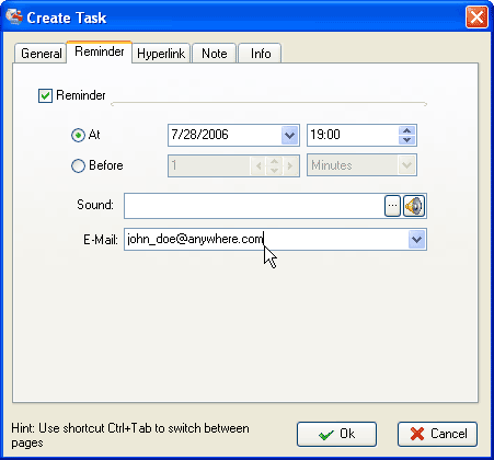 If you use VIP Simple To Do List or VIP Organizer, you should enter emails, while in VIP Team To Do List you can select them from Resource drop down list. Don’t forget to set SMTP (Tools -> Options) beforehand. |